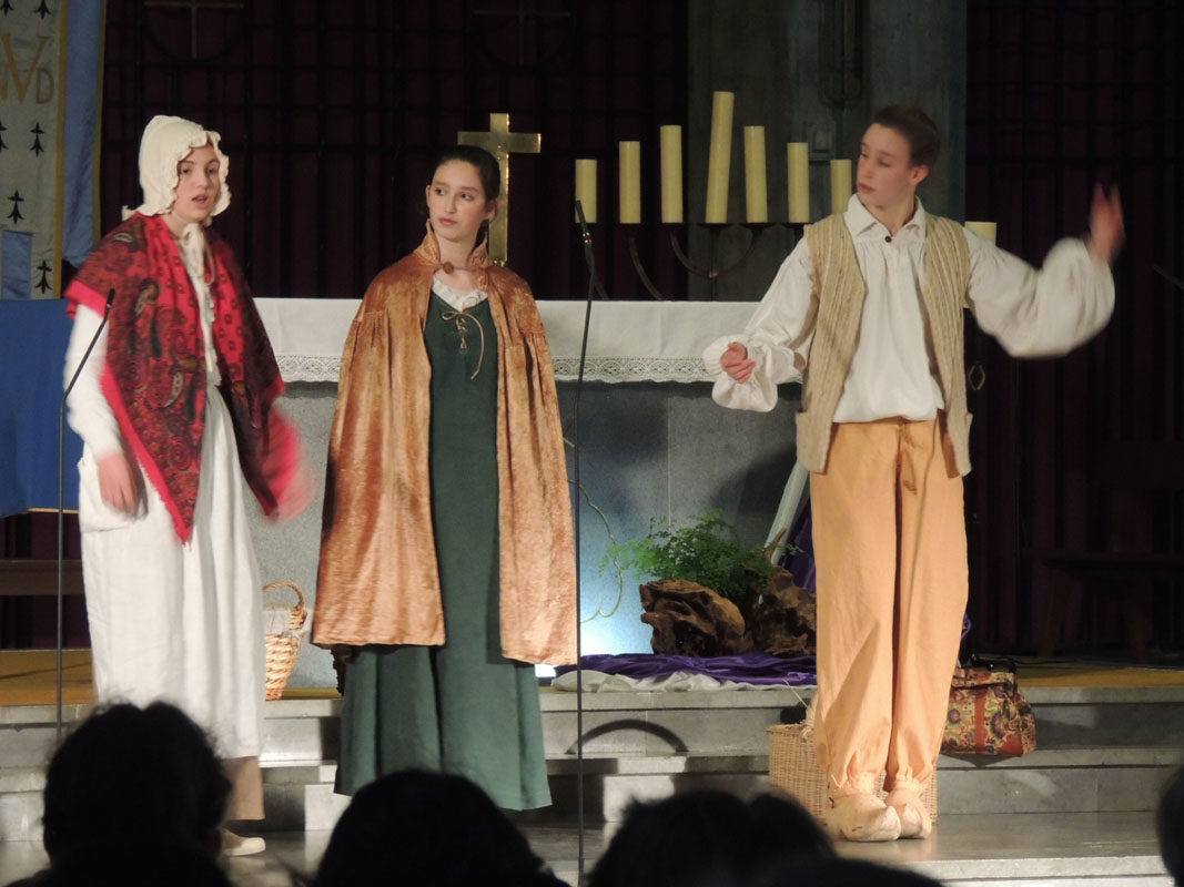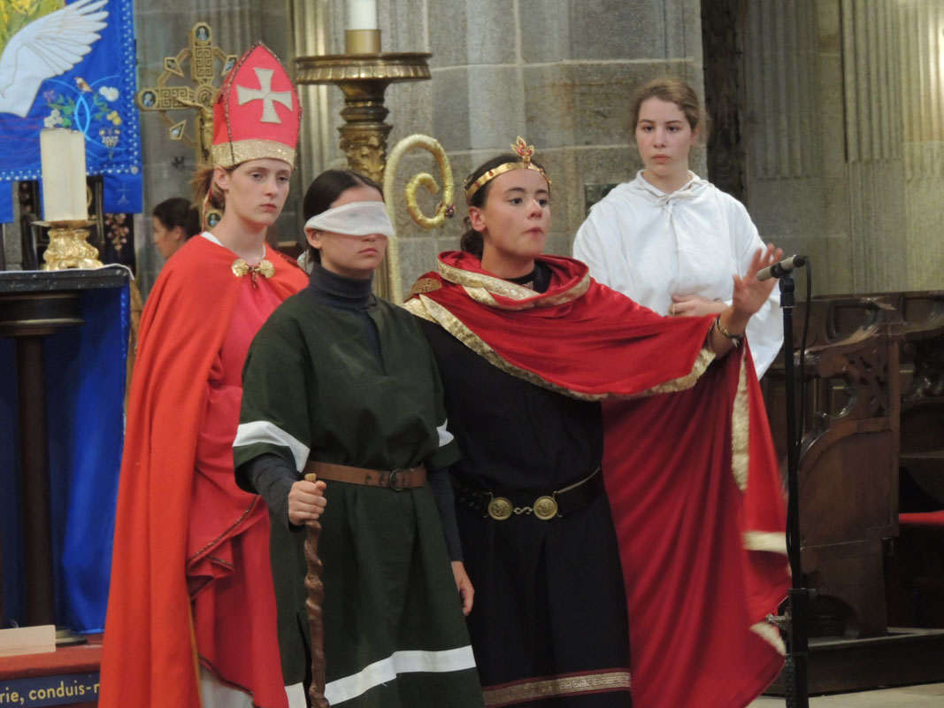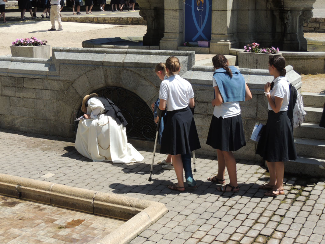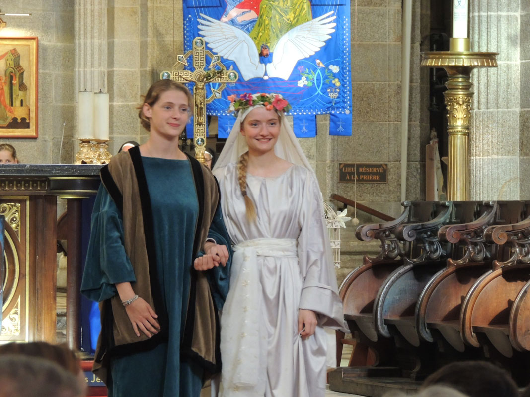 Après Lorient en mars et Pontivy en mai, aujourd’hui, fin de l’aventure missionnaire de la Troménie chez Madame sainte Anne à Sainte-Anne d’Auray. Journée haute en couleurs pour finir l’année ; partant de Brech nous arrivons à pied à Sainte-Anne d’Auray pour imiter les premiers pèlerins et rendre grâce pour l’année écoulée. Ultime répétition générale dans la basilique, magnifique démarche jubilaire de toute l’école, temps conviviaux puis représentation le soir. « Ma mère, c’est passé trop vite » s’exclamera une 6ème, un peu frustrée de voir l’aventure déjà terminée, mais heureuse d’avoir vécu le don de soi.