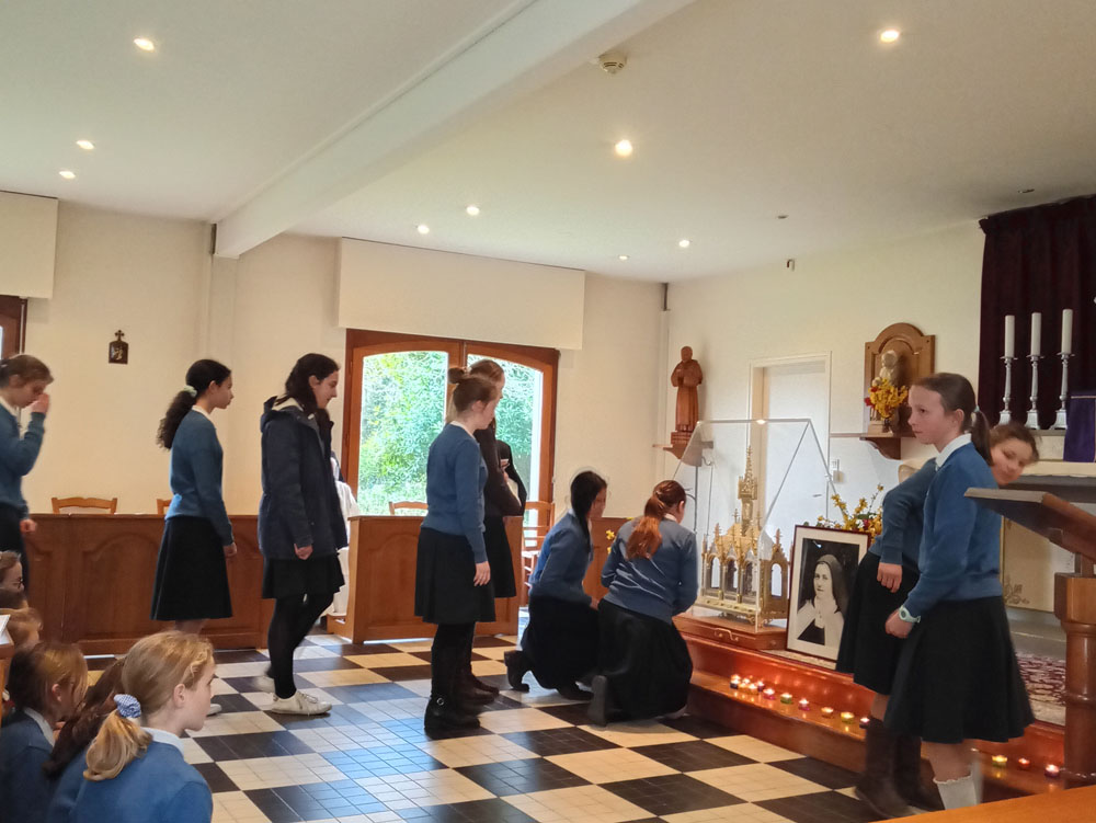 Ce même jour, le 12 mars, les élèves de 4èmes font une pause dans leur emploi du temps habituel pour se recentrer davantage auprès de Jésus en profitant du beau cadre de Notre-Dame de Joie.